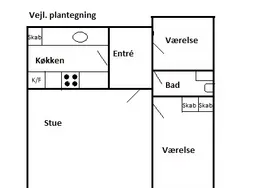 3 værelses på 60 m