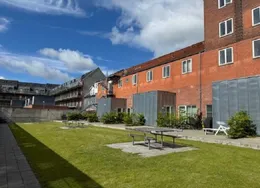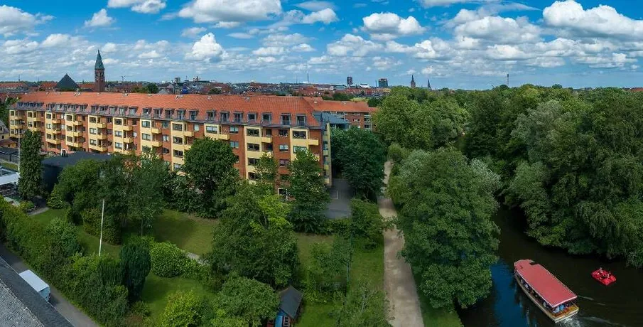 Dette værelse ligger i en ejendom med direkte adgang til det naturskønne stisystem langs Odense Å, som snor sig gennem byen og fører til Munke Mose – en grøn oase midt i Odenses livlige centrum. Her får du en rolig base med naturen lige uden for døren, samtidig med at du bor centralt.. Ejendommen rummer 18 værelser på 4. sal, fordelt fra opgang A til F. Værelserne er organiseret i mindre sektioner, hvor beboerne deler adgang til fælles køkkener og badeværelser. I alt er der 5 badeværelser og 3 køkkener, som benyttes sektionsvis, hvilket skaber en god balance mellem privatliv og fællesskab.. Praktisk info:. – El og vand er inkluderet i lejen.. – Udover huslejen betales for varme, dette vil figurere som aconto.. – Der er mulighed for internet.. Der er adgang til følgende:. – Fællesvaskeri