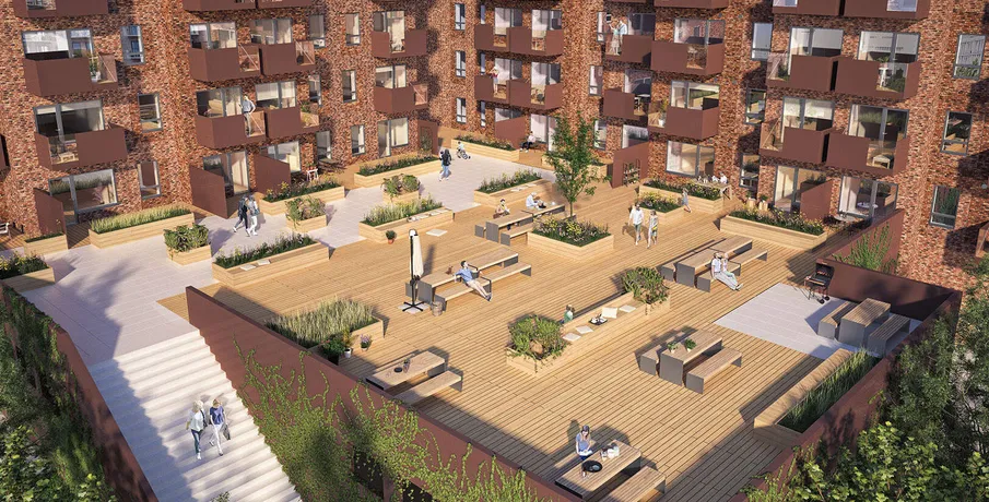 Arkitekttegnede boliger opført i kvalitetsmaterialer Elevator i alle opgange Fuld hårde hvidevarer-pakke: opvaskemaskine, tørretumbler, vaskemaskine mv. Alle lejligheder er udstyret med gardiner Depotrum medfølger til alle boligerne Husdyr tilladt op til 5 kg. Cykelparkering i stueplan Mulighed for egen parkeringsplads indendørs i stueplan (kr. 750,00 pr. md.) Stor fælles terrasse og grønne udearealer Kort afstand til Aalborg Centrum Offentlig transport lige udenfor døren Gode indkøbsmuligheder inden for gå-afstand