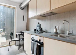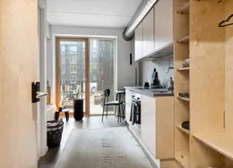 Boligerne har et godt køkken med komfur i forbindelse med boligens alrum. Derudover er der et rummeligt badeværelse med stor bruseplads. Både værelser og opholdsrum er med pæne parketgulve, mens badeværelserne har klinkegulv. Ejendommen bliver opført med lækker gårdhave og adgang til stor fælles tagterrasse. Derud over er der gode parkeringsmuligheder på terræn til din cykel. Der vil desuden på 2. sal kunne findes betalingsvaskeri samt et fint fællesrum med køkken, hvor beboere kan mødes til arrangementer og hyggestunder. *OBS* - billederne er fra en lignende prøvebolig.