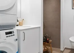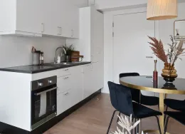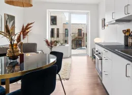 Boligerne har et godt køkken med komfur i forbindelse med boligens alrum. Derudover er der et rummeligt badeværelse med stor bruseplads. Opholdsrum er med pænt parketgulve, mens badeværelset har klinkegulv. Ejendommen bliver opført med lækker gårdhave og adgang til stor fælles tagterrasse. Derud over er der gode parkeringsmuligheder på terræn til din cykel. Der vil desuden på 2. sal kunne findes betalingsvaskeri samt et fint fællesrum med køkken, hvor beboere kan mødes til arrangementer og hyggestunder. *OBS* - billederne og 3D scanning kan være fra en lignende prøvebolig.