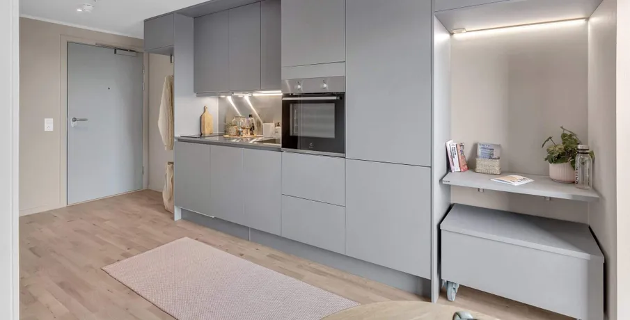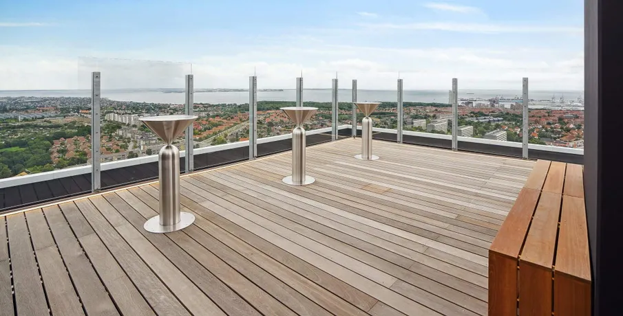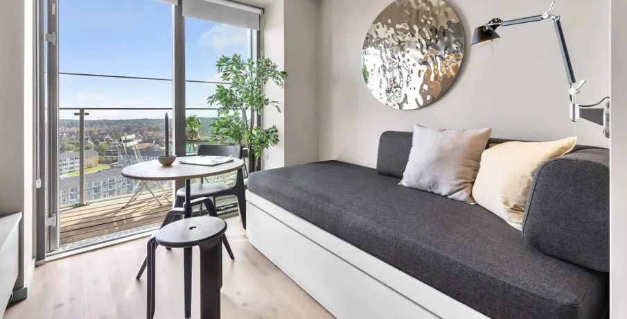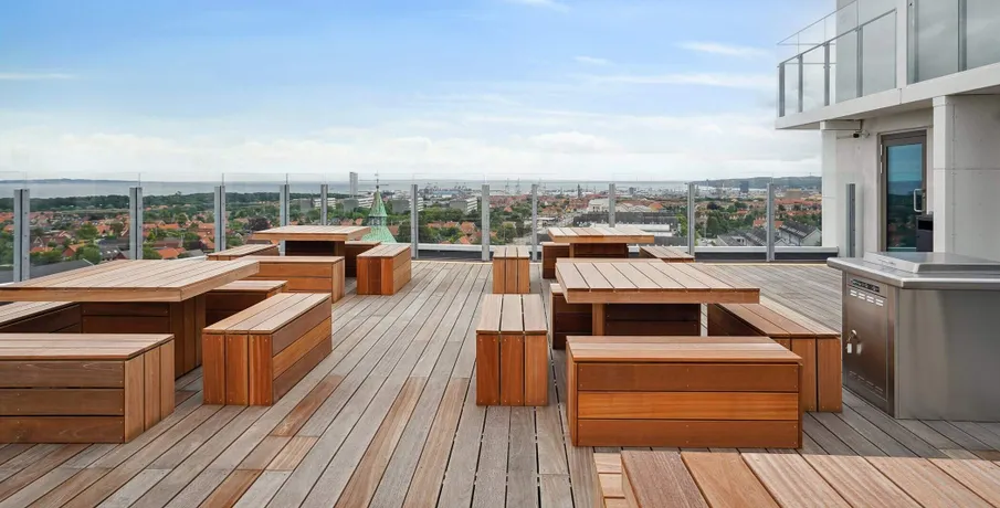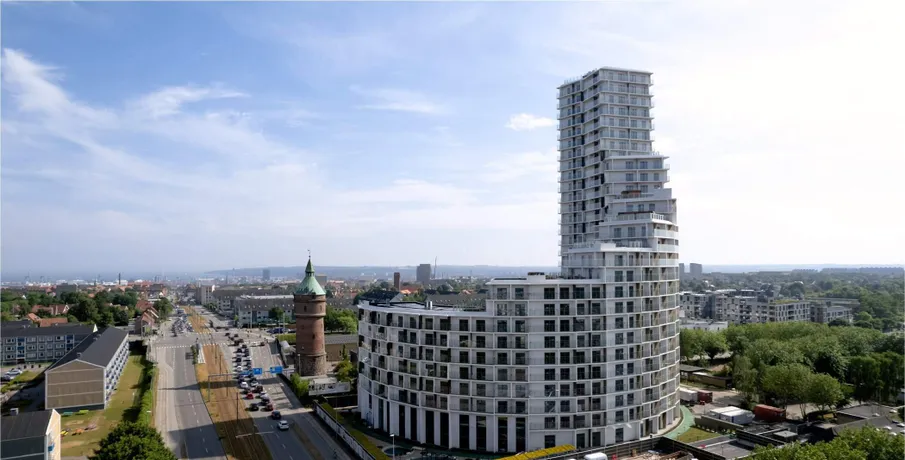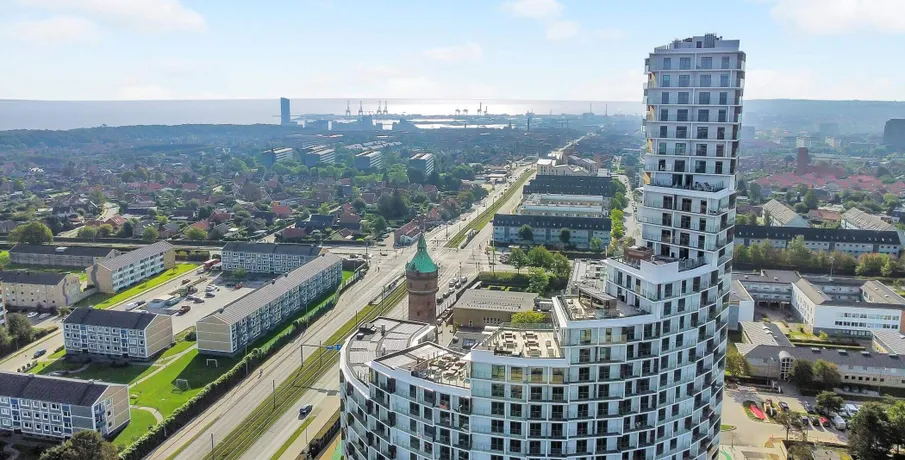Archouse er et helt nyt koncept og boform i Aarhus!. HVAD ER ARCHOUSE?. Det er et helt nyt community og måde at leve på, beliggende på Aarhus' højeste punkt og er dermed Danmarks højeste boligbyggeri! Dit nye hjem i den 28-etagers høje ejendom har rejst sig imponerende 170 meter over havets overflade, hvor du får en imponerende panoramaudsigt ud over Aarhus og bugten samt til hele 7 kommuner.. I kommende 1-, 2- og 3-værelses FULDT MØBLEREDE lejelejligheder nær Aarhus centrum, der varierer i størrelser fra 29 m2 helt op til 94 m2, er der kræset for detaljerne. Alle lejligheder har et tidløst køkken med opvaskemaskine og stålbordplade, stort badeværelse med gulvvarme, privat altan eller terrasse - og meget mere.. De elegante lejelejligheder i høj kvalitet er som før nævnt FULDT MØBLEREDE i samarbejde med det britiske design studio, Tom Dixon og klar til indflytning.. Som lejer hos Archouse har du direkte adgang til en bred vifte af attraktive faciliteter, lige udenfor din private dør:. - Fitness med yogarum. - Udendørs træningsfaciliteter samt løbe-og multiboldbane. - 7 store tagterrasser, hvoraf to har udendørs bruser og sauna. - Café og loungeområder. - Fælles køkkener og vaskefaciliteter - der ligger op til fællesskab og samvær med naboen samt helt nye bekendtskaber på kryds og tværs mellem ejendommens beboere.. - Mini-biograf og play-room (bordtennis.). Der kan tilkøbes co-working der byder på lækre faciliteter, der gør dit hjemmekontor langt mere inspirerende.