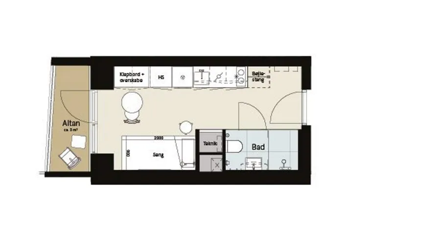 1 værelses lejlighed på 31 m2
