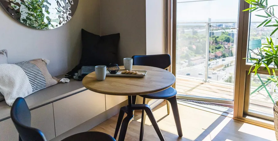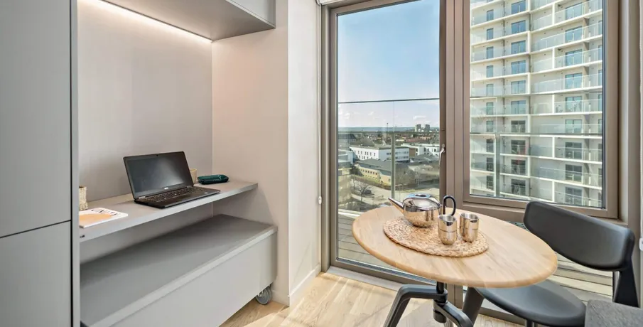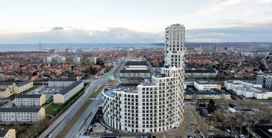 Archouse er et helt nyt koncept og boform i Aarhus!. HVAD ER ARCHOUSE?. Det er et helt nyt community og måde at leve på, beliggende på Aarhus' højeste punkt og er dermed Danmarks højeste boligbyggeri! Dit nye hjem i den 28-etagers høje ejendom har rejst sig imponerende 170 meter over havets overflade, hvor du får en imponerende panoramaudsigt ud over Aarhus og bugten samt til hele 7 kommuner.. I kommende 1-, 2- og 3-værelses FULDT MØBLEREDE lejelejligheder nær Aarhus centrum, der varierer i størrelser fra 29 m2 helt op til 94 m2, er der kræset for detaljerne. Alle lejligheder har et tidløst køkken med opvaskemaskine og stålbordplade, stort badeværelse med gulvvarme, privat altan eller terrasse - og meget mere.. De elegante lejelejligheder i høj kvalitet er som før nævnt FULDT MØBLEREDE i samarbejde med det britiske design studio, Tom Dixon og klar til indflytning.. Som lejer hos Archouse har du direkte adgang til en bred vifte af attraktive faciliteter, lige udenfor din private dør:. - Fitness med yogarum. - Udendørs træningsfaciliteter samt løbe-og multiboldbane. - 7 store tagterrasser, hvoraf to har udendørs bruser og sauna. - Café og loungeområder. - Fælles køkkener og vaskefaciliteter - der ligger op til fællesskab og samvær med naboen samt helt nye bekendtskaber på kryds og tværs mellem ejendommens beboere.. - Mini-biograf og play-room (bordtennis.). Der kan tilkøbes co-working der byder på lækre faciliteter, der gør dit hjemmekontor langt mere inspirerende.