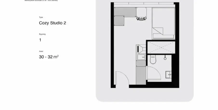 . Om Studio 22. Studio 22 er et moderne bofællesskab skabt til studerende og young professionals under 35 år.. Her får du både privatliv og fællesskab – med madklubber, kreative værksteder, studieområder og hyggelige lounges.. Du kan reparere din cykel, lave kreative projekter, deltage i sociale events – eller bare slappe af i din egen bolig.. Din bolig indeholder. - Fuldt møbleret: skrivebord, lampe, stol, gardiner, garderobeskab og opbevaring. - Eget badeværelse med bruser, håndvask og toilet. - Lille tekøkken med kogeplade, emhætte, vask og køleskab. - Indflytningsklar fra kun 6.500 kr./mdr.. - Mulighed for boligstøtte på alle boligtyper. Fællesområder & faciliteter. - Fitnesscenter. - Kreative værksteder. - Privat biograf. - Loungeområder & fælleskøkkener. - Sociale arrangementer og events. Alt sammen inkluderet i huslejen.. Beliggenhed. Kun 13 minutter til Nørreport St. – tæt på både byliv, studie og arbejde.. Lejebetingelser. - Studerende: Bygning 1, 2 eller 3. - Young Professionals: Bygning 3. - Aldersgrænse: Under 35 år. - Dokumentation for arbejde skal kunne fremvises. - 2-personers boliger: kun type 5, 8, 9 og 10. - Minimum lejeperiode: 12 måneder. - Depositum: 15.000 kr. (betales ved kontraktindgåelse). Få den fulde boligliste hos mægler for overblik over bygninger og værelsestyper..