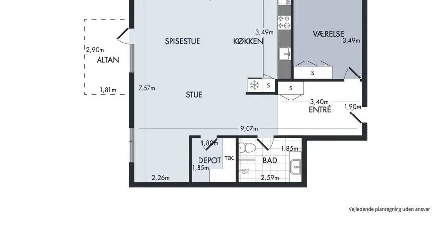 1 værelses lejlighed på 86 m2