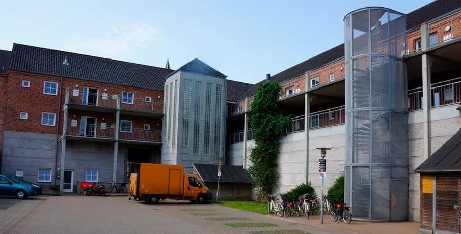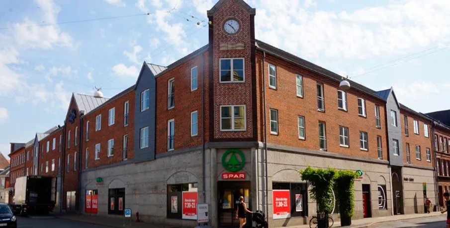 Hvis du har ønske om at bo lige midt på torvet og være i centrum af bylivet, så går du på ingen måde fejl af at vælge Studiegården, som består af 46 et- og to-rums ungdomsboliger mellem 26 og 50 kvadratmeter etableret på første og anden sal i en moderne byejendom.. Klik her, for at se plantegninger for afdelingen. I stueetagen findes et supermarked, og bare 50 meter væk findes gågaden med et væld af varierede butikker – ligesom det kommende storcenter kun ligger 200 meter herfra.. Herudover ligger Studiegården nær biblioteket, cafeer og byens kultur- og fritidstilbud.