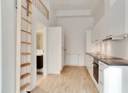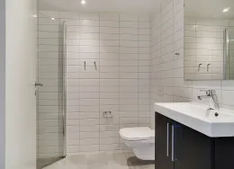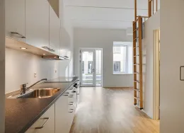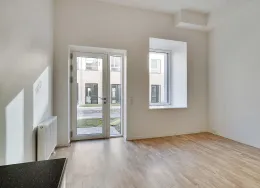 . . Singlebolig på velindrettede 48 m2 udlejes. Lejligheden har flot badeværelse med plads til vaskemaskine som lejer selv skal medbringe.. Lyst køkken fra HTH med opvaskemaskine i åben forbindelse med stuen hvor det er god plads til sovesofa/seng samt spiseplads. Der er depotrum i kælder samt trappeopgang med elevator.. Vi kan give dispensation til husdyr (hunderacer skal godkendes) – husk at spørge om du kan få godkendt husdyr til den bolig du søger om. Ved husdyrtilladelse opkræves 1 ekstra mdr. forudbetalt leje.. Der opkræves aconto vand på 300kr samt aconto varme på 250kr. Strøm afregnes direkte med forsyningsselskabet.. Denne bolig har altan med udgang fra stuen.. Lejligheden overtages med ovn med pyrolyse, induktionskogeplade, køle/frys, emhætte samt opvaskemaskine.. Der er fri parkering på ejendommen, og der er etableret fælleladestandere hvis du har el-bil.. Indskud udgør: 3 mdr depositum + 1 mdr forudbetalt leje + første mdr husleje. Minimumslejeperiode på 1 år.. Billeder er visualiseringer og med forbehold for evt. projektændringer..