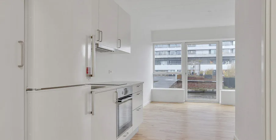 . Alle lejligheder er beliggende på bygningens første sal ovenpå en stor og velassorteret Meny. Alle lejligheder er 1-værelseslejligheder med kombineret stue- og køkkenområde og eget badeværelse. Der er depotrum i bygningens kælder.. Hårde hvidevarer. Der er køleskab og fryser samt kogeplade i boligen. Vaskemaskine og tørretumbler findes i det fælles vaskerum.. Husdyr. Lejere kan ansøge om tilladelse til at holde én indekat på adressen. Udekatte og hund er ikke tilladt.. Se vores samlede husdyrsregler. her. .. Parkering. Der er ikke parkering tilknyttet lejlighederne.. Elevator. :. Der er elevator i ejendommen.. Fælles arealer. Lejlighederne omkranser alle en central atriumgård med beplantning og havemøbler, hvor der er plads til hygge med vennerne eller til at fordybe sig i en god bog. Det er også muligt at leje et stort fællesrum med køkken til private fester.. Læs mere om boligen. De viste billeder kan være fra et andet men tilsvarende lejemål i samme ejendom. Mindre afvigelser kan derfor forekomme..