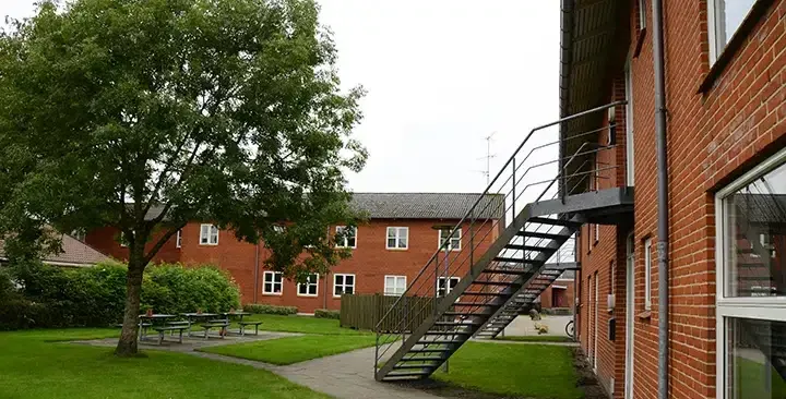 Studieboliger i etagebyggeri lige i centrum af Hammerum. Studieboligerne er beliggende tæt på både indkøbsmuligheder, Hammerum Hallen, busstoppesteder samt stationen, hvilket betyder gode transportmuligheder til både uddannelsesinstitutionerne TEKO og AU-HIH samt Herning centrum. Der er et dejligt grønt fællesområde med borde og bænke.
