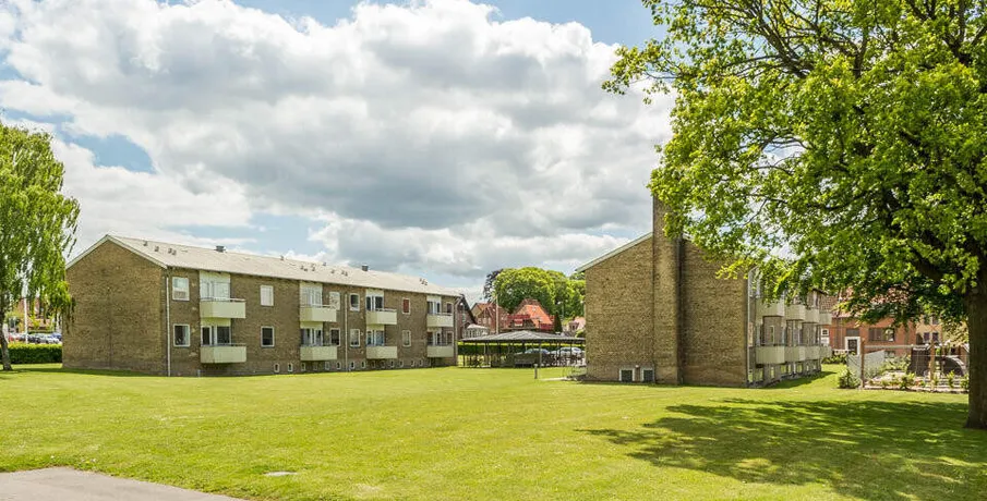 Ungdomsboligerne ligger lidt nord for centrum på stor grund med gode udearealer.