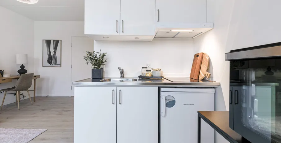 1-værelses lejlighed – Poppelstykket. Boligen. Velkommen til Poppelstykket i København SV, et moderne boligområde med funktionelle og lyse lejligheder.. Den 1-værelses lejlighed er praktisk indrettet med god pladsudnyttelse og mulighed for både sove- og opholdsplads i ét.. Ejendommen. Ejendommen tilbyder fælles køkkener, opholdsrum og vaskemuligheder, som gør hverdagen nem og bekvem. Her får du et moderne hjem med alt det nødvendige inden for rækkevidde.. Området. Poppelstykket ligger i et attraktivt område tæt på Valby Station, som giver nem adgang til resten af København.. I nærområdet finder du dagligvarebutikker, caféer, fitnesscentre og grønne områder, der gør hverdagen både nem og behagelig.. Billederne i denne annonce kan være fra lignende enheder og er kun til illustration. De repræsenterer stilen og kvaliteten af de tilgængelige enheder og kan variere i opbygning og detaljer.. Møblerne vist på billederne medfølger ikke. De skal give et indtryk af, hvordan rummet kan indrettes, men er ikke inkluderet i lejemålet..