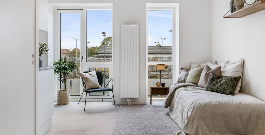 1-værelses lejlighed – Poppelstykket. Boligen. Velkommen til Poppelstykket i København SV, et moderne boligområde med funktionelle og lyse lejligheder.. Den 1-værelses lejlighed er praktisk indrettet med god pladsudnyttelse og mulighed for både sove- og opholdsplads i ét.. Ejendommen. Ejendommen tilbyder fælles køkkener, opholdsrum og vaskemuligheder, som gør hverdagen nem og bekvem. Her får du et moderne hjem med alt det nødvendige inden for rækkevidde.. Området. Poppelstykket ligger i et attraktivt område tæt på Valby Station, som giver nem adgang til resten af København.. I nærområdet finder du dagligvarebutikker, caféer, fitnesscentre og grønne områder, der gør hverdagen både nem og behagelig.. Billederne i denne annonce kan være fra lignende enheder og er kun til illustration. De repræsenterer stilen og kvaliteten af de tilgængelige enheder og kan variere i opbygning og detaljer.. Møblerne vist på billederne medfølger ikke. De skal give et indtryk af, hvordan rummet kan indrettes, men er ikke inkluderet i lejemålet..