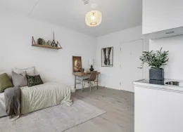 1-værelses lejlighed – Poppelstykket. Boligen. Velkommen til Poppelstykket i København SV, et moderne boligområde med funktionelle og lyse lejligheder.. Den 1-værelses lejlighed er praktisk indrettet med god pladsudnyttelse og mulighed for både sove- og opholdsplads i ét.. Ejendommen. Ejendommen tilbyder fælles køkkener, opholdsrum og vaskemuligheder, som gør hverdagen nem og bekvem. Her får du et moderne hjem med alt det nødvendige inden for rækkevidde.. Området. Poppelstykket ligger i et attraktivt område tæt på Valby Station, som giver nem adgang til resten af København.. I nærområdet finder du dagligvarebutikker, caféer, fitnesscentre og grønne områder, der gør hverdagen både nem og behagelig.. Billederne i denne annonce kan være fra lignende enheder og er kun til illustration. De repræsenterer stilen og kvaliteten af de tilgængelige enheder og kan variere i opbygning og detaljer.. Møblerne vist på billederne medfølger ikke. De skal give et indtryk af, hvordan rummet kan indrettes, men er ikke inkluderet i lejemålet..