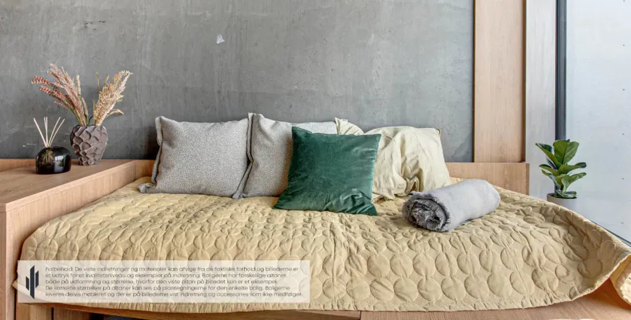 . Lejlighederne er designet med fleksibilitet in mente. Møblerne er designet med flere funktioner, hvilket gør det nemt at skifte fra stue til soveværelse eller arbejdsområde til spisestue. Det er smart living, men stadig fuld af muligheder. Alle lejlighederne har et nordisk designkøkken lavet i samarbejde med det kendte, danske køkkenfirma Reform. Interiøret er specialdesignet af arkitekten, og rummer innovative løsninger, der optimerer hverdagslivet..