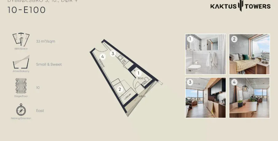1 værelses lejlighed på 33 m2