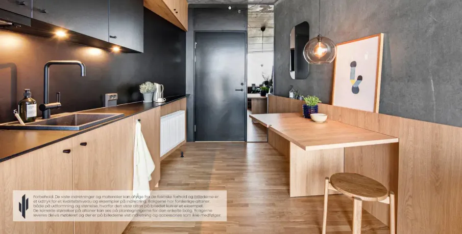 . Lejlighederne er designet med fleksibilitet in mente. Møblerne er designet med flere funktioner, hvilket gør det nemt at skifte fra stue til soveværelse eller arbejdsområde til spisestue. Det er smart living, men stadig fuld af muligheder. Alle lejlighederne har et nordisk designkøkken lavet i samarbejde med det kendte, danske køkkenfirma Reform. Interiøret er specialdesignet af arkitekten, og rummer innovative løsninger, der optimerer hverdagslivet..