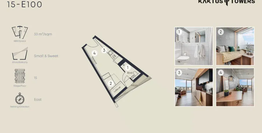. Lejlighederne er designet med fleksibilitet in mente. Møblerne er designet med flere funktioner, hvilket gør det nemt at skifte fra stue til soveværelse eller arbejdsområde til spisestue. Det er smart living, men stadig fuld af muligheder. Alle lejlighederne har et nordisk designkøkken lavet i samarbejde med det kendte, danske køkkenfirma Reform. Interiøret er specialdesignet af arkitekten, og rummer innovative løsninger, der optimerer hverdagslivet..