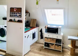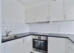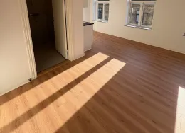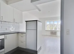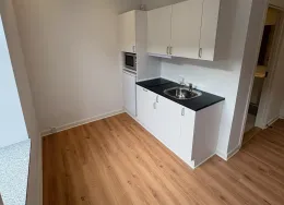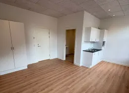 . Pæn og regulær 1 værelses lejlighed, med pænt køkken og pænt bad, stort opholdsrum.. God indretning. Perfekt til studerende og singler.. Lyse materialer og en lys og rummelig lejlighed, godt indrettet. Skabe i entré m.m.. Skøn beliggenhed på Violvej – med grønne områder som nabo og kun 5 min. gang til International Business College og Designskolen, og 10 min. gang til banegården. Desuden store grønne arealer lige udenfor døren.. Forhør venligst nærmere..