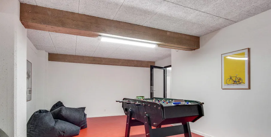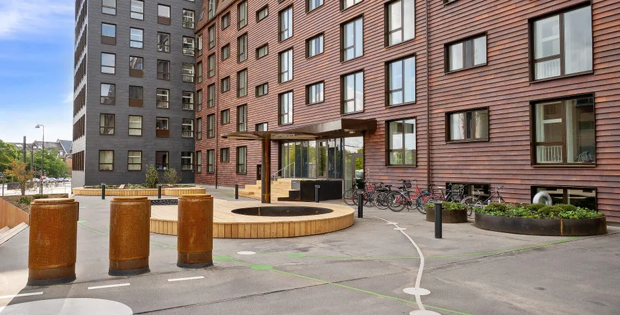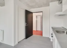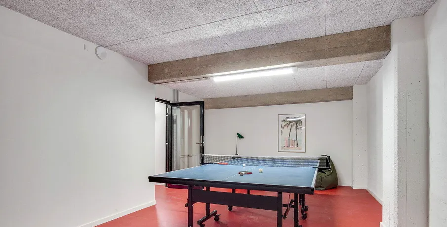 . Velkommen til Tigergården på Østre Stationsvej 2F i Odense C. Her udlejer vi 1-værelses lejligheder og enkelte 2-værelses lejligheder. Udover din egen bolig er der flere fællesrum i hele bygningen samt et festlokale i kælderen.. Hårde hvidevarer. Der er et køle- og fryseskab, ovn, 2-zoners induktionskogeplader og emhætte i lejlighederne. Vaskemaskine og tørretumbler findes i kælderen.. Husdyr. Lejere kan ansøge om tilladelse til at holde én kat. Se vores samlede husdyrsregler. her. .. Parkering. Det er muligt at leje en p-plads i en parkeringskælder i nærheden. Kontakt udlejningskonsulenten for nærmere information.. Fælles arealer. På hver etage er der et møbleret fællesrum. Afhængigt af etagerne er der bordfodbold, bytte-bogreol, bordtennis eller et festlokale. Der er altså masser plads til at dyrke det gode naboskab eller invitere vennerne over, hvis lejligheden bliver for trang.. Læs mere om boligen. De viste billeder kan være fra et andet men tilsvarende lejemål i samme ejendom. Mindre afvigelser kan derfor forekomme..