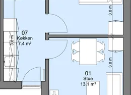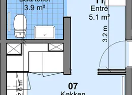 2 værelses på 45 m2
