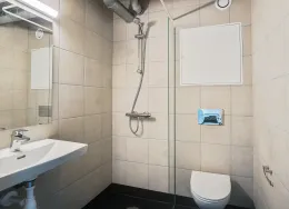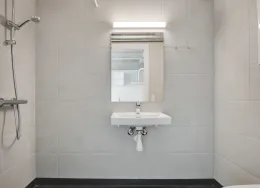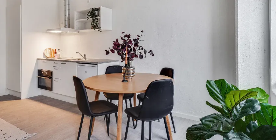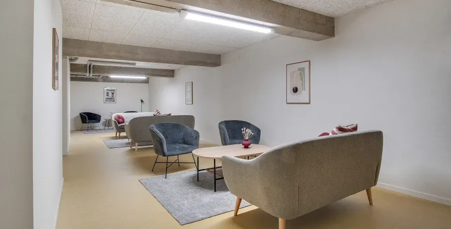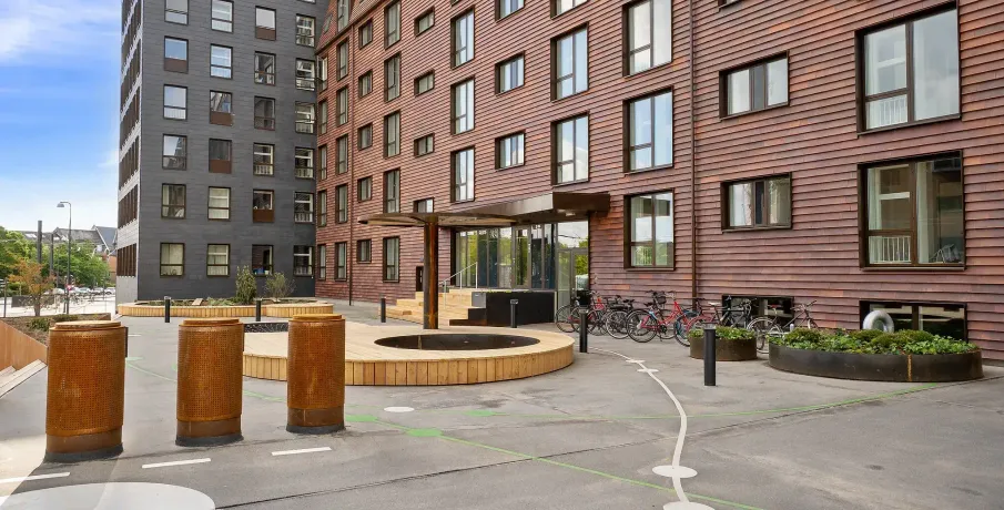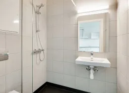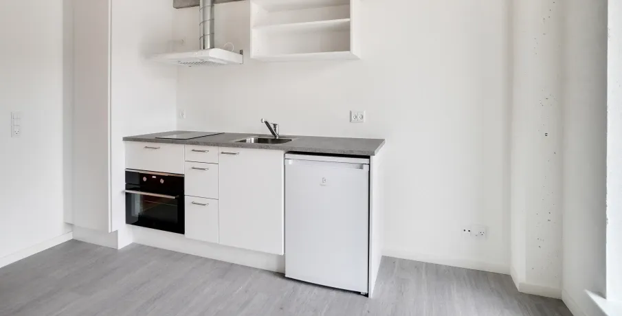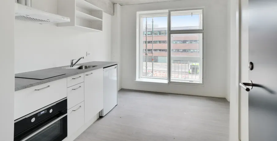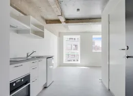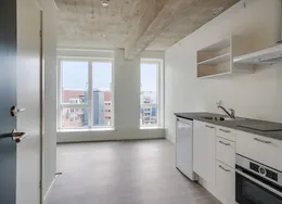 . Velkommen til Tigergården på Østre Stationsvej 2F i Odense C. Her udlejer vi 1-værelses lejligheder og enkelte 2-værelses lejligheder. Udover din egen bolig er der flere fællesrum i hele bygningen samt et festlokale i kælderen.. Hårde hvidevarer. Der er et køle- og fryseskab, ovn, 2-zoners induktionskogeplader og emhætte i lejlighederne. Vaskemaskine og tørretumbler findes i kælderen.. Husdyr. Lejere kan ansøge om tilladelse til at holde én kat. Se vores samlede husdyrsregler. her. .. Parkering. Det er muligt at leje en p-plads i en parkeringskælder i nærheden. Kontakt udlejningskonsulenten for nærmere information.. Fælles arealer. På hver etage er der et møbleret fællesrum. Afhængigt af etagerne er der bordfodbold, bytte-bogreol, bordtennis eller et festlokale. Der er altså masser plads til at dyrke det gode naboskab eller invitere vennerne over, hvis lejligheden bliver for trang.. Læs mere om boligen. De viste billeder kan være fra et andet men tilsvarende lejemål i samme ejendom. Mindre afvigelser kan derfor forekomme..