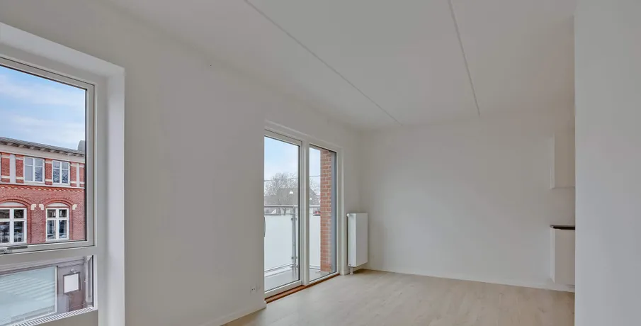 Drømmer du om at bo centralt med alt inden for rækkevidde? I Rosenbæk Passagen, hvor Vesterbro møder Vindegade, udlejes nu en række skønne, nybyggede lejligheder.. Her får du en unik beliggenhed midt i Odense Centrum med gågadens livlige atmosfære og byens mange muligheder lige uden for døren.. Lejlighederne er moderne og lyse, opført med fokus på kvalitet og komfort. Med gulvvarme i alle rum og en gennemtænkt planløsning bliver dit hjem både funktionelt og indbydende. Hver lejlighed byder på en rummelig entré med indbyggede skabe og vaskesøjle, et stilrent køkken med opvaskemaskine, et soveværelse med skabsplads, et flot badeværelse og en hyggelig stue. Fra stuen er der udgang til en dejlig altan på de øvre etager – et perfekt sted at slappe af og nyde solen.. Som en ekstra fordel er der mulighed for at leje en privat parkeringsplads, så du altid har nem adgang til dit hjem med elevator fra kælderen.