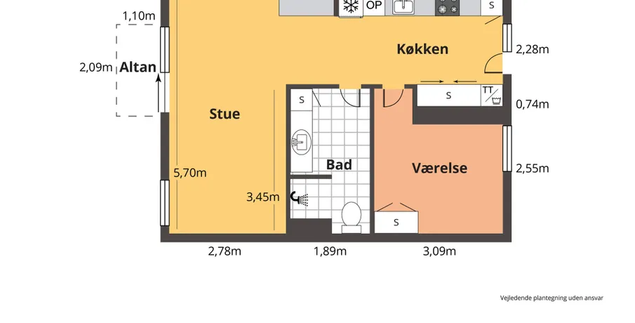 1 værelses lejlighed på 66 m2