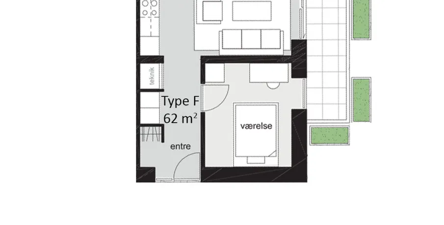 1 værelses lejlighed på 62 m2