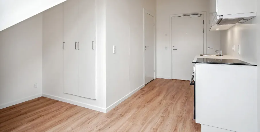 . På Vestre Strand Allé 60-64 i Risskov udlejer vi 1-værelses lejligheder (og en enkelt 3-værelses), hvor flere lejemål har egen altan eller terrasse. Bliv en del af et stort bofællesskab med andre unge i smørhullet af strand, skov og byliv.. Hårde hvidevarer. Der er ovn, kølefryseskab og emhætte i lejemålene. Vaskemaskine og tørretumbler er i et fælles vaskerum.. Husdyr. Lejere kan ansøge om tilladelse til at holde én indekat og hund. Se vores samlede husdyrsregler. her. .. Parkering. Der er ingen parkering tilknyttet denne ejendom. Der er dog mulighed for parkering i området, hvor offentlige parkeringsregler er gældende.. Fælles arealer. Det kan være svært at jonglere mellem hverdagssysler, det sociale liv og studierne. På Vestre Strandallé samler vi det hele under et tag, og hvis du er ny i byen, kan du få dig en ny omgangskreds lige ude foran døren.. Hver etage rummer et fællesrum med et særligt tema. Du har selvfølgelig adgang til alle fællesrum. Det kan være et aktivitetsrum, et rum med langborde til studielæsning eller fællesspisning og etagen med sofaerne.. Studier viser, at bofællesskaber øger livskvaliteten - det ønsker vi, at Vestre Strandallé bidrager til.. Gider du ikke sidde alene på din altan, kan du nyde de mange fælles terrasser og altaner. Er du mere til græs mellem tæerne, byder ejendommen også på græsarealer, som du heldigvis ikke selv skal slå.. Læs mere om boligen. De viste billeder kan være fra et andet men tilsvarende lejemål i samme ejendom. Mindre afvigelser kan derfor forekomme..