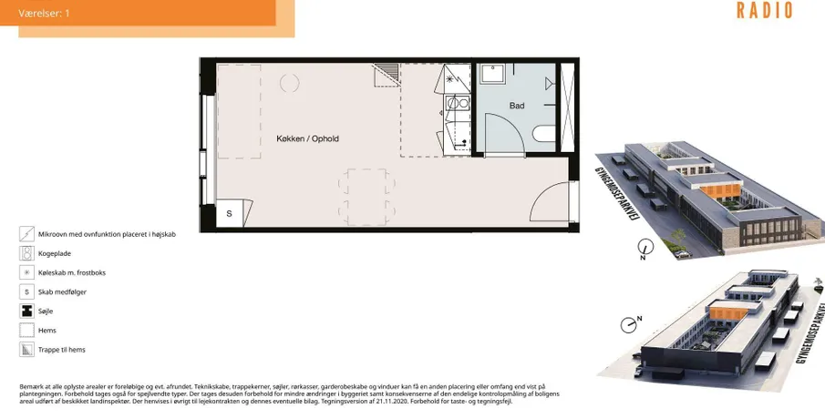 Project Radio ligger på Gyngemose Parkvej 80 i Søborg, som husede DR fra 1963 til 2007. Over de seneste år er den tidligere TV-Byen blevet omdannet til et attraktivt og livligt boligområde.Når du studerer, er det vigtigt med en tryg base at vende hjem til. Der skal være ro på de indre linjer, før der er overskud til at lære nye ting – på studiet, om livet og om relationer.Ligesom på studiet er god forberedelse guld værd, når du skal flytte ind et nyt sted. Her kan du blive klogere på, hvad du kan se frem til i din nye ungdomsbolig.Farvel til mors madgryder. Nu er det tid til, at du selv kan shine i dit eget HTH-køkken med skabsplads og en slidstærk, hvid lakering, der ligesom badeværelset er let at rengøre. Bordpladen kommer i hvid laminat.Dine hvidevarer er installeret på forhånd og er af mærket Vestfrost, hvor du får køleskab med frostboks, mikroovn med ovnfunktion, keramisk kogeplade med 2 sektioner og en udtræksemhætte. Her kan du snildt øve dig på din nye personlige hofret.Gå glad i bad. Her skal du nemlig ikke stå inde over dit toilet, når du står under bruseren. På badeværelset får du en separat bruseniche og et væghængt, vandsparende toilet fra Villeroy & Boch med indbygningscisterne. Den elegante porcelænshåndvask med underskab er designet af danske Dansani, og armaturerne er fra Grohe.Skabsplads får du også godt med. HTH-skabene har klare, hvide overflader, der er lette for dig at holde rene. Gulv og bruseniche er beklædt med matte, mørkegrå klinker, og på væggene er der tilsvarende fliser.I KÆLDERENS FÆLLESRUM FINDER DU:INDGANG TIL ATRIUM, FÆLLESKØKKEN, LOUNGE, LÆSESAL, FÆLLESLOKALE, FITNESSRUM, VASKERI OG TØRRERUM, DEPOTRUMI GÅRDRUMMET FINDER DU:OPHOLDS- OG MØDESTEDER, SOLSEJL TIL AFSKÆRMNING AF OPHOLD OG SCENE, ZONEOPDELING AF GÅRD MED BEPLANTNING.Ungdomsboligerne i Project Radio ligger i naturskønne omgivelser på grænsen til København, hvorfra du hurtigt kan ramme en supercykelsti på cyklen. Der er også gode offentlige transportmuligheder i nærheden med buslinjer, Husum St. samt den kommende letbanestation på Dynamovej.Området i Gyngemose Park er et livligt miljø med kontorerhverv og boligejendomme, der er omgivet af store, grønne fællesarealer. I dit nye nabolag finder du også butikker til de daglige indkøb, hvor Rema 1000 er få minutter væk. Skal du købe større ind, kan du lægge vejen forbi BIG Shopping Center i Herlev, hvor du bl.a. finder Elgiganten, Føtex og Sportmaster.Vil du have sved på panden, kan du dyrke sport i den lokale idrætshal Gyngemosehallen og i Blågård Svømmehal.Husdyr er ikke tilladt. NB: Ingen krav om studiekort.OBS - Billederne er fra vores 1-værelses prøvelejlighed, hvorfor de ikke nødvendigvis er retvisende for denne specifikke lejlighed. Der tages forbehold for ændringer i såvel arealer som indretning.