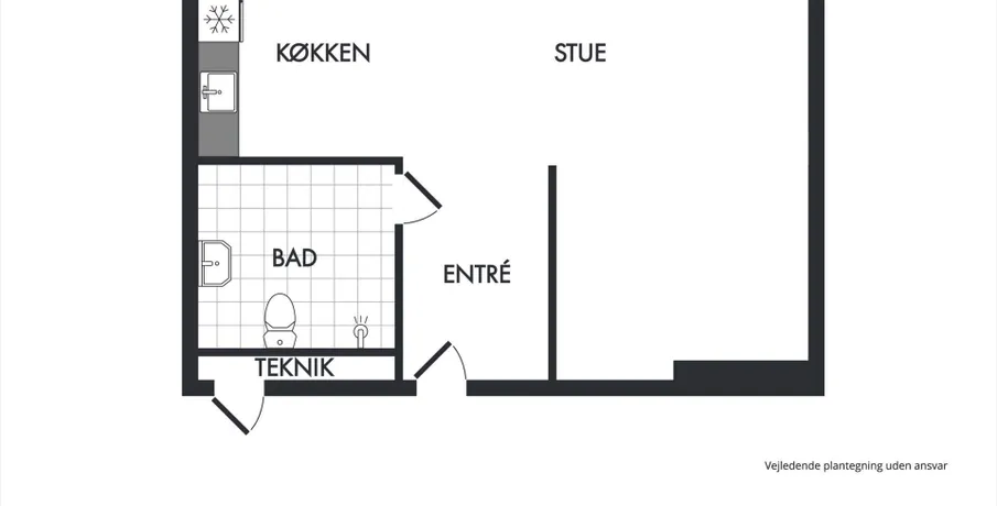 1 værelses lejlighed i Valby