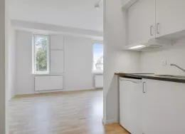 . Denne lejlighed står snart klar til sin nye lejer.. Dette er ikke en studiebolig, så alle er velkommen.. Ubegrænset leje.. Lejligheden er en god 1 vær. lejlighed der er moderne indrettet.. Køkken har godt med skabs plads, keramisk kogeplader, emhætte samt køleskab med lille fryser.. Derfra kommer du til stuen/værelset - som har et dejligt lysindfald med de store vinduespartier, samt den franske altan, mod vest.. Badeværelset er ligeledes dejligt lyst og der er god plads.. Til lejligheden er der tilhørende kælderrum på 6 m3. Ligeledes er der også adgang til ejendommens nyrenoverede vaskerum med selvdoserende vaskemaskiner og med app-betjening.. Kontakt os i dag, hvis du ønsker en fremvisning.. Vi viser frem alle ugens syv dage - også ud på aftenen..