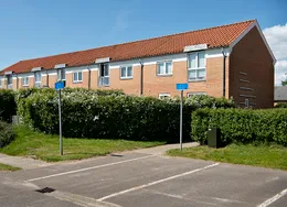 . Hyggelig 1-værelses ungdomsbolig med udgang til lille terrasse. . Det er tilladt at holde op til 2 hunde eller katte i afdelingen.. . Ulriksdal er beliggende i den vestlige bydel i et roligt område tæt på Himmerlandsstien og i gå- og cykelafstand til midtbyen, Vestbadet og Viborg Storcenter. Ulriksdal har endvidere et beboerhus samt gæsteværelser, man kan leje til overnattende gæster.