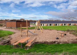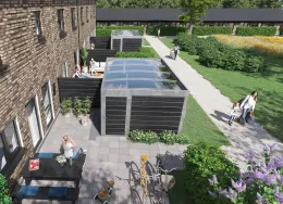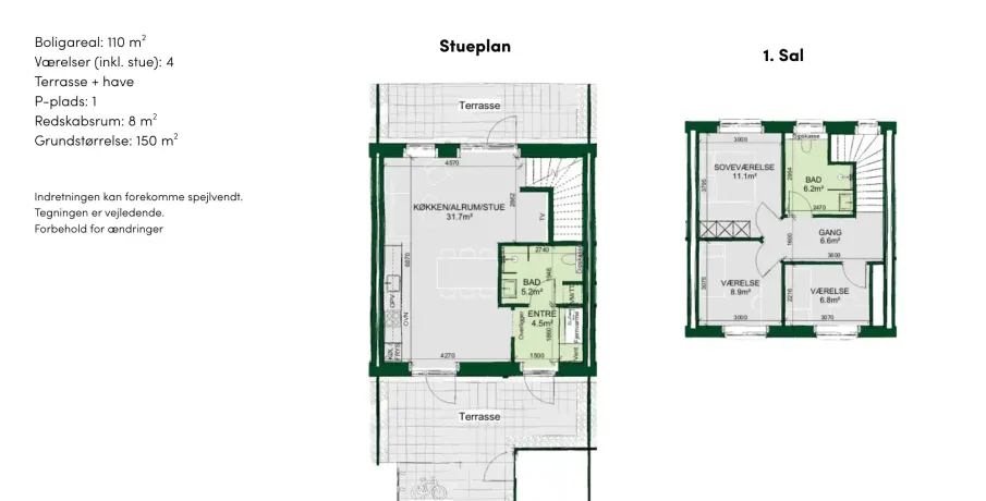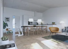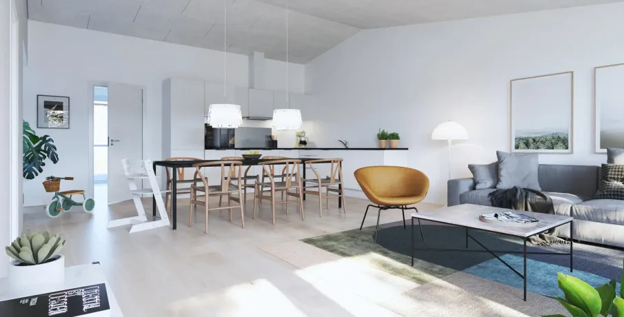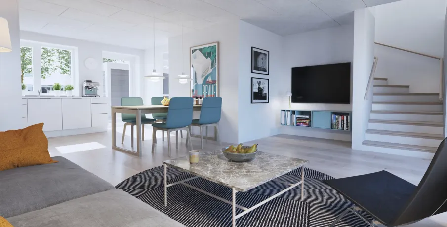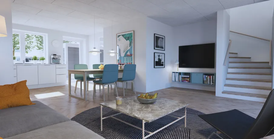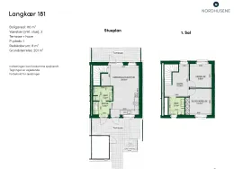 Rummelig bolig i to plan med plads til familienModerne bolig i to etager, hvor funktionalitet og komfort går hånd i hånd. Med fire værelser, to badeværelser og et stort køkken/alrum er der god plads til både samvær og privatliv – perfekt til familien.Stueplan – hjemmets samlingspunktI stueplan finder du boligens hjerte: det store køkken/alrum og stue, hvor der er masser af plads til både madlavning, lektier og hyggelige aftener. Fra rummet er der direkte udgang til terrassen og haven, så livet kan leves både inde og ude. Her er også et badeværelse og en praktisk entré.Førstesalen – ro og privatlivOvenpå finder du tre værelser og endnu et badeværelse. Det største værelse er oplagt som soveværelse, mens de øvrige kan bruges til børn, gæster eller hjemmekontor. En funktionel gang binder etagen sammen og giver ekstra plads i hverdagen.Udeliv og praktiske rammerBoligen har både terrasse og have, hvor udelivet kan nydes hele året. Hertil kommer et separat redskabsrum samt cykelparkering og parkeringsmulighed med ladestander, der gør boligen fuldt udstyret til det moderne familieliv.
