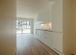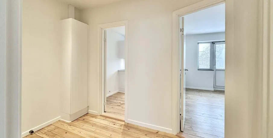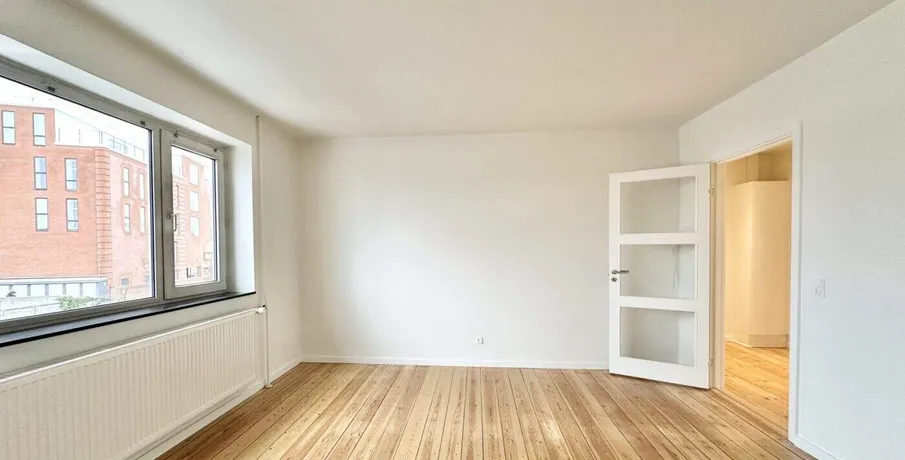 I skønt 6 families hus udlejes denne lækre nyrenoveret 2. vær. lejlighed på 63 m2 beliggende på 1. sal., kun 1 kilometer fra gågaden i Odense City og nær letbanestop. Lejligheden har god lys stue, stort soveværelse, godt med plads til skabe, computerplads m.m. Lækkert flisebadeværelse med brus og inventar fra Grohe og Duravit, samt flot stort køkken fra Designa med masser af skabsplads og alt i Miele hårde hvidevarer, herunder opvaskemaskine. Der er afhøvlede gulve, dørtelefon, fælles vaskeri, kælderrum samt adgang til stor fælles have. Leje pr. mdr. kr. 6.432,00 + 500,00 + vand kr. 400,00. Depositum kr. 19.296,00. Der er mulighed for leje af garage.