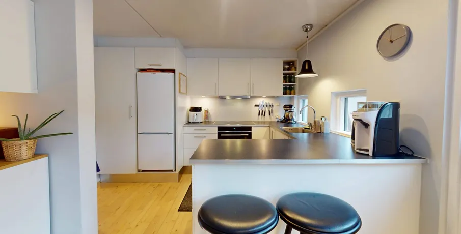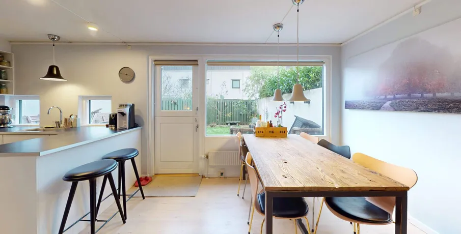 . Charmerende og indflytningsklart rækkehus i eftertragtede Lyngby. Velkommen til dette skønne rækkehus, hvor charme, moderne komfort og en særdeles attraktiv beliggenhed går op i en højere enhed. Hjemmet ligger i det populære Rævehøjparken – et roligt og familievenligt kvarter med trygge omgivelser, grønne fællesarealer og kort afstand til alt det, Lyngby har at byde på.. Når du træder ind i boligen, bliver du mødt af en behagelig atmosfære og en velgennemtænkt planløsning. Stueplanet byder på et stort og moderne køkken med gode arbejdsforhold og masser af opbevaringsplads. Her er der både plads til madlavning og hyggelige stunder med familien. Køkkenet ligger i forbindelse med den lyse og rummelige stue, hvor de store vinduespartier giver et dejligt lysindfald og skaber en naturlig forlængelse ud mod haven. Fra stuen er der direkte adgang til boligens hyggelige have – en skøn oase med plads til grill, leg, afslapning og udendørs middage i de varme måneder.. På første salen finder du tre rummelige og regulære værelser, der alle fremstår lyse og anvendelige. Her er god plads til både børneværelser, kontor, gæsterum eller et stort soveværelse – alt afhænger af jeres behov. Etagen rummer også boligens nyere badeværelse, som fremstår moderne, velholdt og med en indbydende finish.. Boligen ligger i et særdeles velfungerende nabolag med kort afstand til skole, institutioner, offentlig transport og indkøb. Det populære Lyngby Hovedgade, Magasin og de mange caféer og specialbutikker ligger lige inden for rækkevidde, samtidig med at naturen omkring Lyngby Sø og Dyrehaven nemt kan nås til fods eller på cykel. Området er kendt for sin tryghed og gode naboskab – oplagt for både familier, par og singler, der ønsker en rolig base tæt på byens puls.. Dette er et charmerende og velholdt rækkehus, der byder på både moderne bekvemmeligheder og en dejlig atmosfære. Her får du en bolig, der er lige til at flytte ind i – og som samtidig rummer alle muligheder for at skabe jeres helt eget hjem..