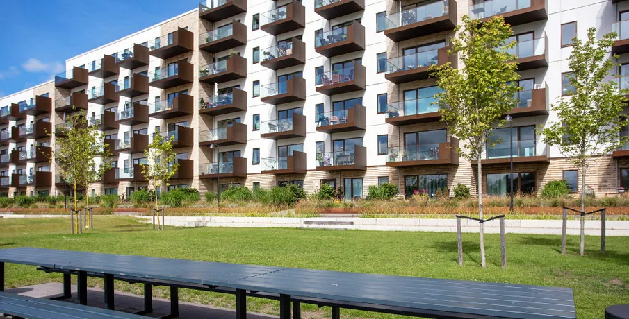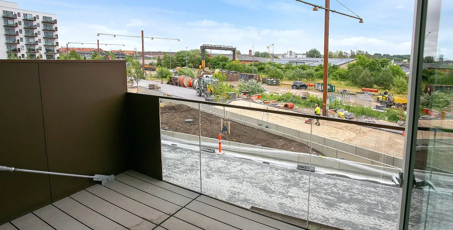 Lyse lejeboliger i naturskønne omgivelser med stor solrig altan Østeråparken byder på 200 skønne lejeboliger på Godsbanen i Aalborg – en attraktiv ny bydel, der er skudt op blandt togskinner og lysmaster og nu byder på grønne oaser og på sigt den fritlagte Østerå. Lejeboligerne er veldisponerede og indbydende med lyse trægulve og store vinduespartier fra gulv til loft, der lader dagslyset strømme ind. De har indbyggede skabe, der gør det let at møblere dine værelser, og mange af dem er desuden indrettet med et ekstra 3 m2 opbevaringsrum i forlængelse af soveværelset, der er oplagt at bruge som walk-in-closet. Hver bolig har sin egen store, solrige altan eller terrasse i stueetagen – ud mod det hyggelige gårdmiljø og den kommende å. Altanerne er afskærmet med glas, der giver læ, udsigt og et elegant udtryk på én gang. For at sikre mere privatliv er en af siderne holdt i en varm, bruneret aluminium. Østeråparken byder både på mindre 2- og 3-værelses lejligheder samt større 3-værelses lejligheder, der ud over altanen også har fransk altan i begge værelser. Der er altså plads til både børnefamilier, studerende, par og singler, hvilket skaber masser af liv og dynamik. Ejendommen er endvidere beliggende tæt på offentlige transportmidler, som bus og tog. Herudover er ejendommen beliggende midt i Aalborg Centrum tæt på indkøbsmuligheder, Musikkens Hus, Nordkraft, grønne parker m.m. OBS: Billederne kan være af den prøvebolig, og ikke den specifikke bolig.