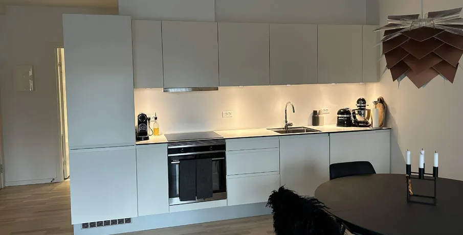 . * Få en af de bedste beliggenheder helt centralt i Aalborg. * Elevator i bygningen, så ingen trapper. * Alle hårde hvidevarer medfølger + gulvvarme i hele boligen. * Rummelig altan som er sydvendt og uden direkte genboer (UNIKT!). * Depotrum medfølger. På kirkegårdsgade tæt på både midtbyen, Kunsten, Mølleparken og offentlige transportmuligheder, finder du 52 nyopførte kvalitetslejligheder. Området emmer af liv, kulturglade mennesker og folk som elsker at bo tæt på det pulserende byliv.. Stenhugger Gaardens facade består af både lyse og mørke mursten, hvilket giver bygningen autenticitet og får bygning til at passe godt i blandt de eksisterende ejendomme. Stenhugger Gaarden er tegnet af Krogh Arkitekter med stor respekt for Aalborgs byliv og flotte gamle bygninger.. På denne adresse kan du leje din næste bolig. Her lejer du ikke bare et sted at bo, men en del af en af Aalborgs mest eftertragtede bydele. Her finder du nemlig et stille boligområde samt rolige grønne omgivelser i midten af Aalborg.. Nogle af lejligheder har en altan. Disse vender enten mod syd eller vest. Her er det oplagt at nyde en dejlig sommeraften med vennerne, familien eller ægtefællen. Nu er det jo ikke nødvendigvis altid belejligt med selskab, så hvis hverdagen eller weekenden byder på alene tid, så kan du gå en tur i kirkegårdsparken som ligger lige overfor bygningen.. På adressen finder du både 2- og 3-værelses lejligheder. Alle lejligheder har ekstra loftshøjde, hvilket øger rummeligheden og fremhæver lysindfaldet. Lejlighederne er opført i hvide materialer, herunder et flot og stilrent hvidt Invita køkken med en fuld hvidevarepakke.. På toppen af Stenhugger Gaarden finder du fem enestående penthouse lejligheder, med store åbne tagterrasser og store gulv til loft panoramavinduer. Stenhugger Gaarden rummer derfor stor diversitet og byder på boliger til mange forskellige ønsker og behov. Derudover er ejendommen opført med elevator. Så er du træt af indkøbsposer og trappetrin i en stor dårlig pærevælling, så er det endnu en god grund til at leje en af lejlighederne på Stenhugger Gaarden.. OBS. :. 1) Hvis man får tilladelse til mindre husdyr (SPØRG INDEN FREMVISNING) - gebyr på 300 kr. pr. mdr.. 2) Kan være billeder fra prøvebolig.