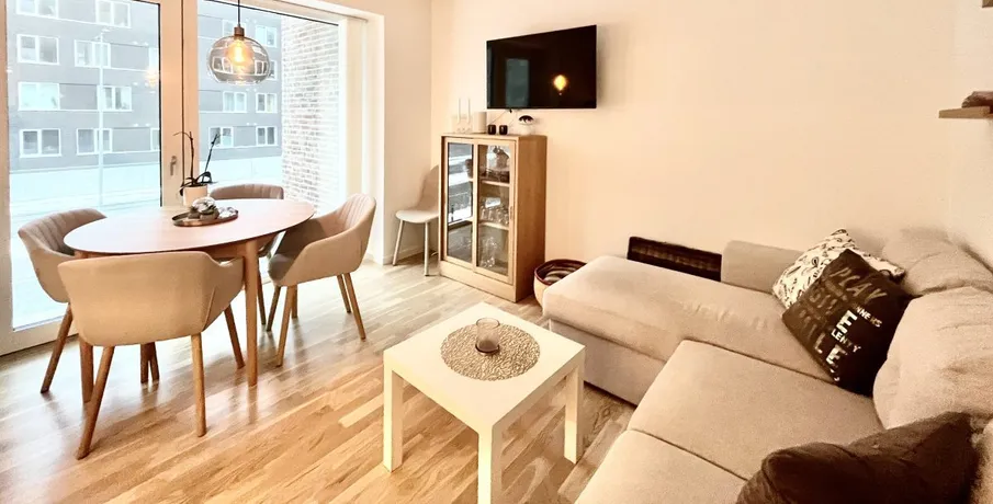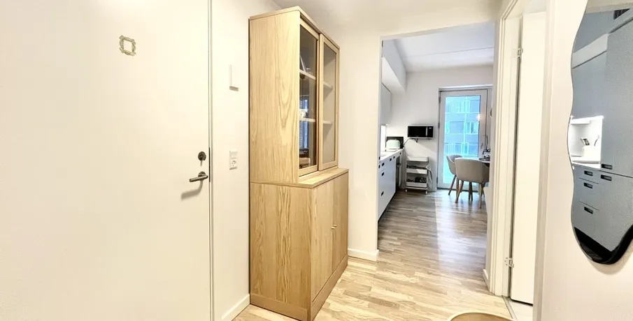 SteKa Bolig udlejer netop nu denne strålende 2-værelses lejlighed, der byder på alt det bedste af moderne bekvemmeligheder. Med et lyst og indbydende interiør, der prydes af gulvvarme og ventilationsanlæg, samt et komplet udvalg af hvidevarer, er dette hjem designet til at imødekomme dine behov på alle niveauer.. Fra den lyse stue får du ydermere har du et flot og veludstyret Svanekøkken - mens vaskesøjlen på badeværelset naturligvis er medfølgende.. Som en ekstra fordel tilbyder lejligheden et fint depotrum i den aflåste kælder samt faciliteter til cykelparkering.. Østre Havnepark byder også på to store fællesorangerier, hvor beboerne kan nyde solrige stunder og samvær med venner og familie.. Bemærk, at husdyr kan tillades efter godkendelse fra udlejer, og der er mulighed for at tilkøbe egen parkeringsplads med eller uden ladestander.. Billederne i annoncen viser en lignende bolig i samme kompleks.. Om området - Østre Havnepark (Fjordtrappen). Fjordtrappen er bygget indefra og ud. Man er nemlig startet indvendigt og har fyldt hver lejlighed med solid kvalitet og lækre detaljer i alt fra hvidevarer og speciallavet køkken til behagelig gulvvarme i alle rum.. Lyse trægulve. Grebsfri skabe. Afstemte klinker. Vi har tænkt over det hele. Du får et...