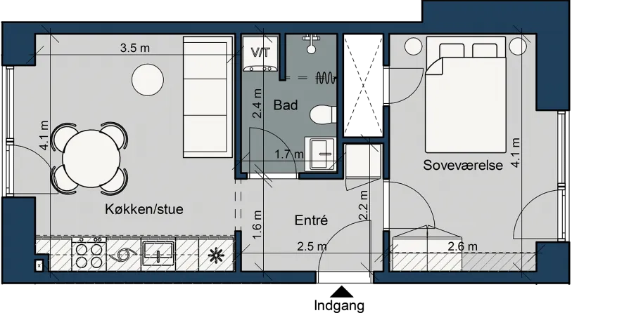 2 værelses lejlighed på 53 m2