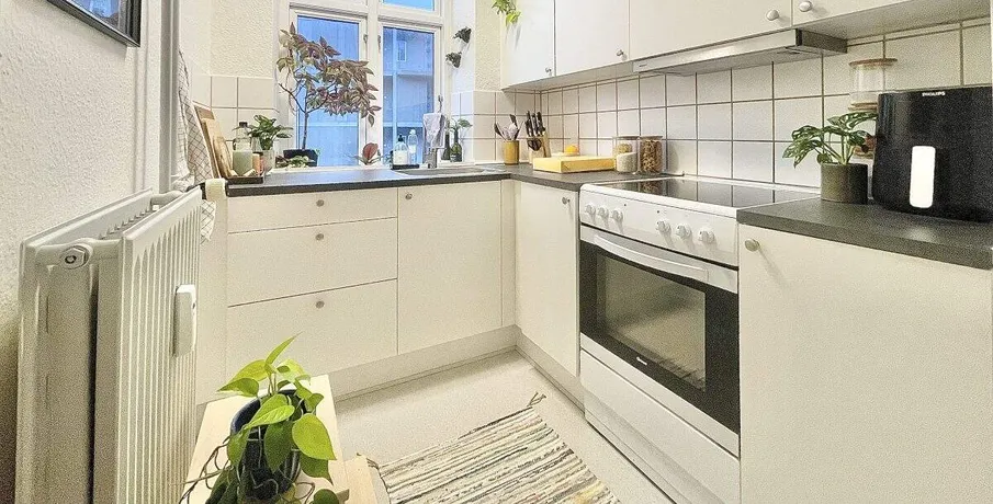 Velkommen til Løkkegade - en hyggelig 2-værelses bolig til en skarp husleje centralt beliggende i Aalborgs centrum.. Køkkenet tilbyder et behageligt naturligt lysindfald og kommer med køle/fryseskab samt fin skabsplads.. Stuen er charmerende med flotte stuklofter og tilbyder rigelig plads til både spisebord, sofa og fjernsyn.. Soveværelset byder ligeledes på generøse kvadratmeter og er placeret mod den rolige baggård, hvilket sikrer en fredelig atmosfære.. Fra den rummelige fordelingsentré er der adgang til boligens badeværelse med bruseniche.. I baggården har du desuden adgang til et veludstyret vaskeri med moderne vaskemaskiner og tørretumblere.. Hvis du søger en attraktiv midtbybolig til en fornuftig husleje, så er Løkkegade det perfekte valg!. Husdyr kan tillades ved godkendelse af udlejer.. Om området - Centrum. Velkommen til Aalborg Midtby - hjertet af Nordjylland, hvor fortidens charme møder nutidens dynamik og danner rammerne om en unik livsstil. Her finder du ikke kun en by, men et levende og pulserende samfund, der tilbyder en bred vifte af oplevelser og bekvemmeligheder.. Boligperler i hjertet af Aalborg:. Tag det...