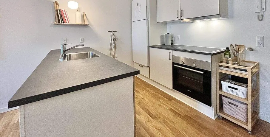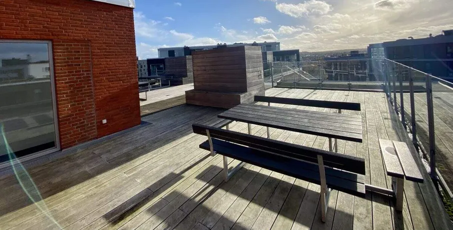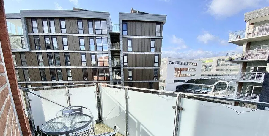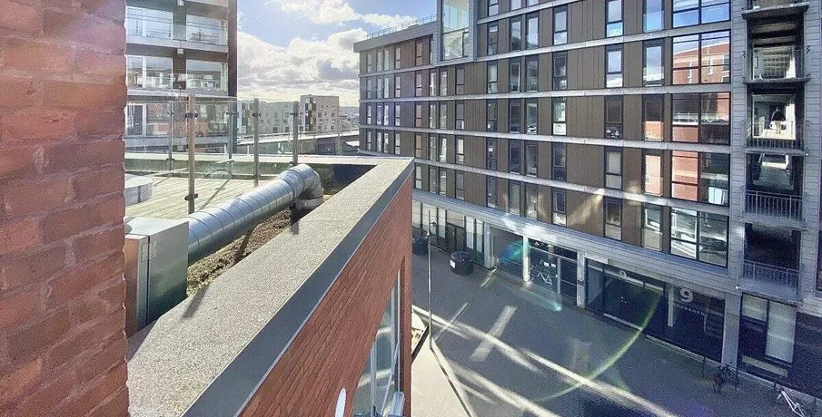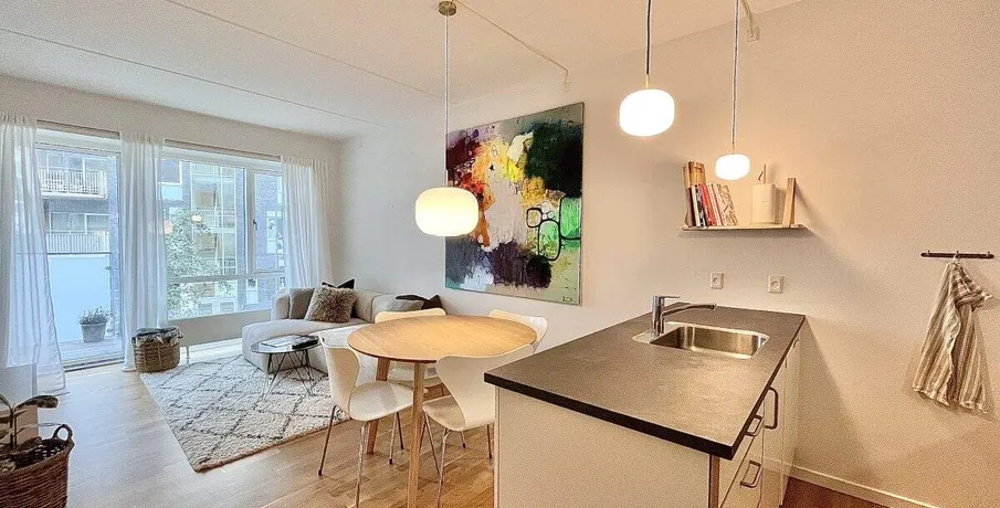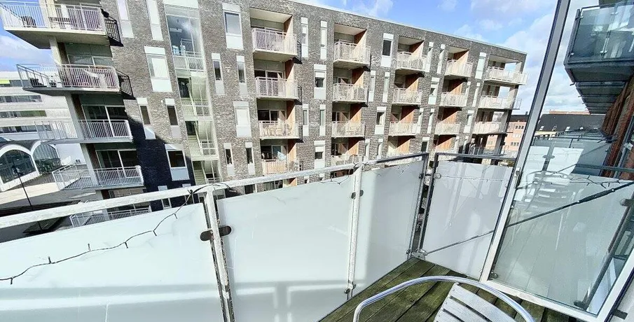 Velkommen til Godsbanen – i hjertet af Aalborg centrum!. Her finder du en moderne og stilren ejendom fra 2018 med attraktive 2- og 3-værelses lejligheder, alle udstyret med store, indbydende altaner.. Indretning og detaljer:. Køkkenet er udstyret med en komplet hvidevarepakke, inkl. opvaskemaskine. Det er designet med en praktisk køkkenø, der gør det nemt at lave mad, mens du kan være i dialog med gæsterne i stuen.. Stuen er rummelig med gode indretningsmuligheder og et skønt lysindfald fra de store vinduespartier. Herfra er der direkte adgang til boligens store, vestvendte altan – perfekt til at nyde eftermiddagssolen.. Soveværelset er af god størrelse og indeholder et praktisk, indbygget skab.. Badeværelset er rummeligt og udstyret med gulvvarme og ventilationsanlæg. Der medfølger også en vaskesøjle for ekstra bekvemmelighed.. Fra entréarealet er der adgang til et mindre teknikrum, som kan bruges som depot.. Ejendommens faciliteter:. Ejendommen har to elevatorer og er altid aflåst for optimal sikkerhed. Viceværtservice sørger for rengøring af trapper, vinduespudsning og udskiftning af måtter – alt inkluderet i huslejen.. Derudover er der et aflåst cykelparkeringsområde, og det er muligt at tilkøbe en privat parkeringsplads få meter fra ejendommen. Ejendommen byder også på fire fælles tagterrasser – oplagte til afslapning på skønne sommerdage.. Central beliggenhed:. Med en bolig på Godsbanen bor du tæt på offentlig transport, indkøbsmuligheder og byens rige kulturliv – alt sammen til en skarp leje.. Find din kommende bolig på Godsbanen hos SteKa Bolig!. Om området - Godsbanen. Velkommen til Aalborgs absolutte centrum.. Her befinder du dig midt i det pulserende midtbyliv med alt, hvad der hører sig til heriblandt et hav af lejligheder, hvoraf mange er af ældre dato. Men blandt disse findes byggeriet kaldet Trappen, der er placeret på det gamle godsbaneareal og heraf vejnavnet Godsbanen....