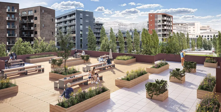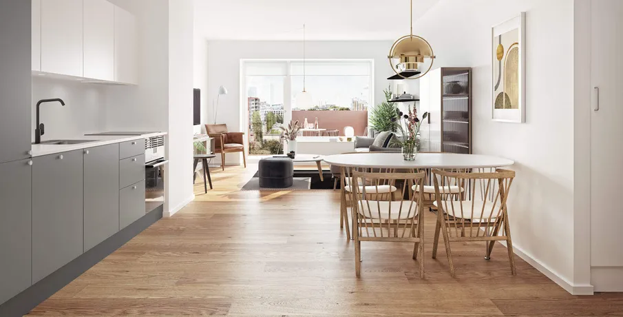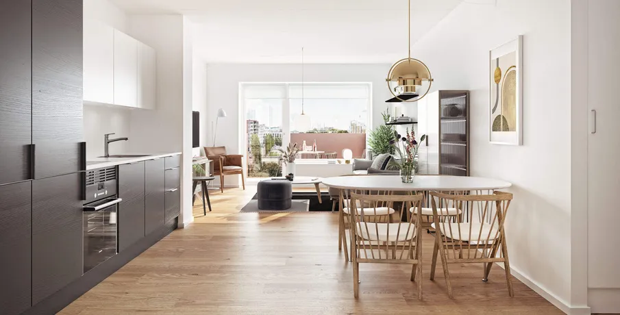 Arkitekttegnede boliger opført i kvalitetsmaterialer Elevator i alle opgange Fuld hårde hvidevarer-pakke: opvaskemaskine, tørretumbler, vaskemaskine mv. Alle lejligheder er udstyret med gardiner Depotrum medfølger til alle boligerne Husdyr tilladt op til 5 kg. Cykelparkering i stueplan Mulighed for egen parkeringsplads indendørs i stueplan (kr. 750,00 pr. md.) Stor fælles terrasse og grønne udearealer Kort afstand til Aalborg Centrum Offentlig transport lige udenfor døren Gode indkøbsmuligheder inden for gå-afstand
