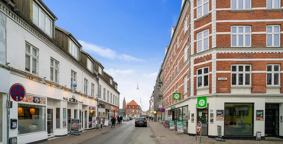 Bo til leje i lys og charmerende lejlighed midt i Aalborg Centrum... Søger du en lejlighed i Aalborg Centrum? I den flotte og velholdte ejendom beliggende i Reberbansgade/Dalgasgade kan du bo i fantastiske og lyse lejligheder i hjertet af Danmarks fjerde største by. Her kan du mærke byens puls og alene i Reberbansgade finder du specialbutikker og et stort udvalg af kulinariske madoplevelser. Om ejendommen og de lyse lejligheder i Reberbansgade og Dalgasgade, 9000 Aalborg: Din nye lejebolig byder på flotte lyse trægulve samt hvide vægge, lofter og træværk. Lejlighederne fremstår som nyistandsatte og indflytningsklare, med blandt andet opvaskemaskine i køkkenet. Lejligheden byder samtidigt på et stort badeværelse med en rummelig bruseniche. Ejendommen fik desuden i 2012 sat pæne nye vinduer i facaden mod gaden. I ejendommens baggård får du adgang til praktiske faciliteter som fællesvaskeri og cykelskur. Lejebolig nær byliv, butikker, caféer og indkøb: Med en lejlighed i Aalborgs pulserende byliv har du alt, du skal bruge lige om hjørnet. Blandt andet finder du dagligvarebutikker, apotek, fitnesscenter og mange parkeringsmuligheder. Blot tre minutter fra din nye lejebolig rammer du Aalborgs hyggelige gågademiljø med hundredvis af butikker, der forhandler modetøj, boliginteriør, køkkenredskaber, møbler, fotoudstyr og meget mere. Du kan også nemt snuppe en frokost på én af byens hyggelige caféer eller opleve en koncert i ét af byens kulturhuse. Uddannelsesinstitutioner og pasningsordninger for børnene finder du også nær boligen i Reberbansgade/Dalgasgade. Bo nær hyggelige grønne parker og få et afbræk fra hverdagen: Selvom du kommer til at bo i en lejlighed midt i Aalborgs pulserende byliv, har du ikke langt til grønne områder, hvor du nemt kan tage en pause fra bymiljøet. I nærområdet finder du nemlig parker som Kildeparken, Østre Anlæg, Karolinelund og Jomfru Ane Parken. Samtidig har du heller ikke langt til Aalborgs havnefront, hvor du kan nyde udsigten til Limfjordens vand og de smukke forbipasserende skibe. Trænger du til en udendørs dukkert, er det nemt, da Aalborg Havnebad ligger blot 700 meter fra lejligheden. OBS: Billederne kan ske at være af en prøvebolig, og ikke den specifikke bolig.