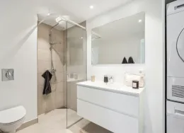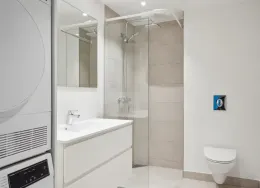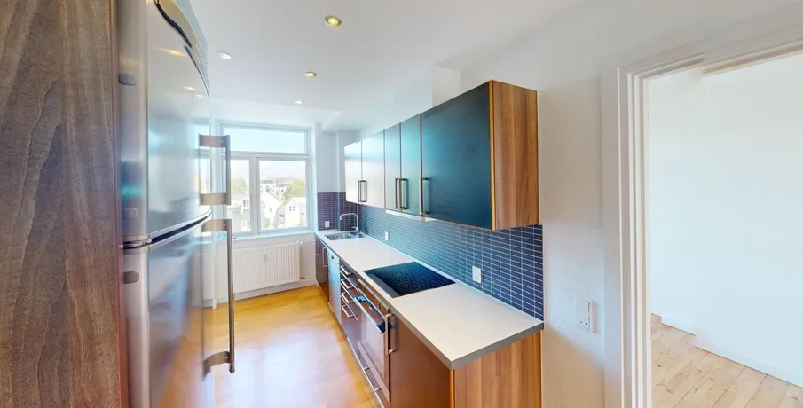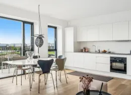 . Beskrivelse. Oplev det bedste af Aalborgs byliv i denne imponerende 2-værelses lejlighed beliggende i Enighedslund. Med en fin, stor altan og enestående moderne faciliteter er denne lejlighed det ideelle valg for dem, der søger både komfort og stil i deres hjem.. Køkkenet er hjertet af enhver bolig, og dette køkken skuffer ikke. Det er udstyret med moderne faciliteter, herunder en opvaskemaskine og et rummeligt køle-fryseskab, der gør madlavningen til en leg. Badeværelset er lyst og indbydende med moderne armaturer, opbevaring i og ved siden af vasken og stor separat bruseniche.. Den store altan tilbyder en fantastisk udsigt og masser af plads til udendørs hygge og afslapning. Nyd solen, mens du drikker til din morgenkaffe eller slapper af med en god bog om aftenen – alt sammen lige uden for din dør.. Område. Med en lejlighed på Vesterbro i Enighedslund får man det hele indenfor gåafstand. En attraktiv beliggenhed i hjertet af Aalborg – herfra har du det hele lige ved hånden. Banegård, busterminal, indkøbsmuligheder og skønne grønne områder i baghaven. Kildeparken og Mølleparken ligger kun få minutters gang fra lejligheden. Kildeparken er én af Aalborgs ældste parker, som ofte er samlingspunkt for en række begivenheder, så som Karneval. Mølleparken finder du lige bag ved Aalborg Zoo. Fra parken kan man nyde den fantastiske udsigt over Allborg, Limfjorden og Egholm. Der er ligeledes kort afstand til indkøbsmuligheder i b.la. Kennedy Arkaden, som huser biograf, specialbutikker, restauranter og caféer.