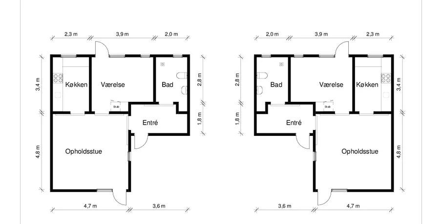 2 værelses lejlighed på 72 m2