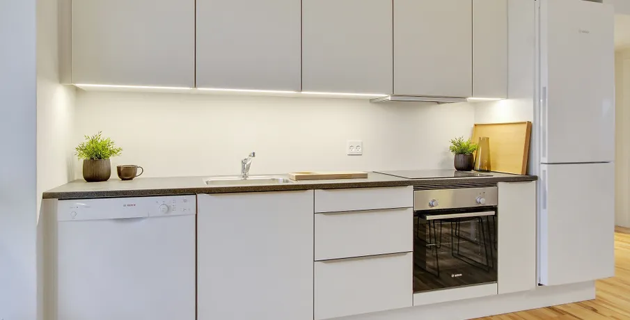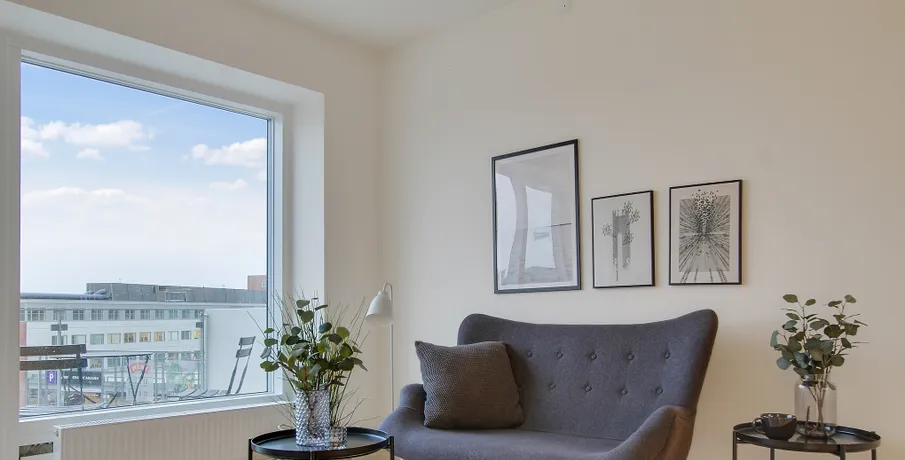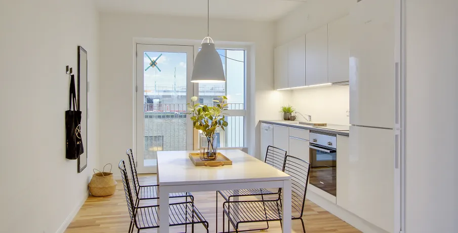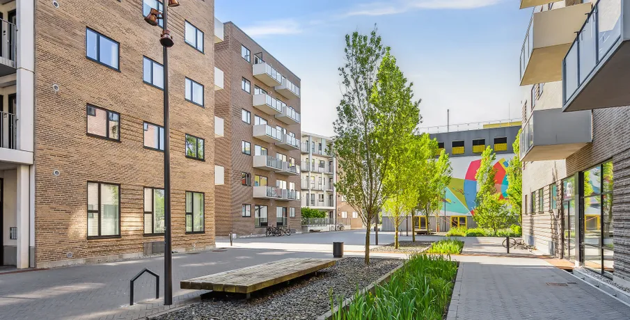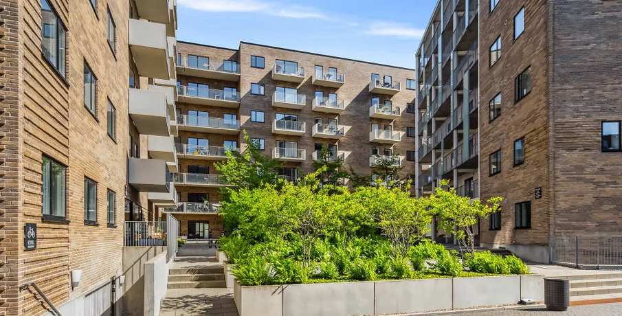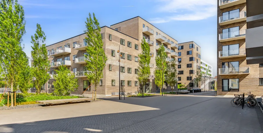 Lejebolig i attraktivt og urbant bymiljø Søger du en moderne lejlighed i Aalborg midtby og i gåafstand til det meste? Med en bolig på Godsbanearealet vil du få et hjem midt i Aalborgs pulserende byliv og byens utallige muligheder. Samtidig vil du også bo nær grønne og hyggelige oaser, hvor du kan trække dig tilbage. Bo nær caféer, butikker og naturskønne områder Med en lejlighed i Godsbanen i Aalborg vil du bo i et nyt og attraktivt urbant bymiljø. I nærområdet finder du uddannelsesinstitutioner og gågademiljø, mens du også har skønne byparker som Åparken, Kildeparken, Østre Anlæg og Karolinelund lige i nærheden. I nærområdet er kulturen også i højsædet. Oplev nogle af Danmarks største navne i Musikkens Hus, nyd en kop kaffe på en café eller gå på shopping i Aalborgs hyggelige gågademiljø. Godsbanearealet er et stemningsfuldt campusmiljø med SOSU Nord og VUC Nordjylland side om side samt HF og Aalborg City Gymnasium lige i nærheden. Med et hjem i lejlighederne på Godsbanen får du gode forbindelser til resten af Nordjylland og landet med både Aalborg Busterminal og banegården lige om hjørnet. Et unikt og privat uderum midt i Aalborgs byliv Unikt for lejlighederne på Godsbanen er, at hver bolig har sit eget private uderum – enten i form af en skøn altan mod byrummet, hvor du kan mærke byens puls, eller en fransk altan og terrasse i stueetagen. Mellem Godsbanens bygninger finder du et skønt gårdrum, der er hævet én meter over byens gulv for at skabe lidt privatliv for beboerne i ejendommen. Gårdrummet er dejlig grønt med masser af træer og buske. Den grønne oase er indrettet med borde samt bænke, så du kan sætte dig ned og nyde en stille stund i solen. Belægningen er desuden designet med forskellige spil som f.eks. skak og kryds og bolle, så der er hjernegymnastik for både børn og voksne. Om lejlighederne på Godsbanen i 9000 Aalborg / Nordjylland Godsbanen består af tre bygninger på henholdsvis fem og seks etager i tre forskellige farvenuancer, der både skaber en sammenhæng og giver variation i udtrykket. Godsbanen har desuden en moderne arkitektur med et urbant udtryk, som passer godt ind i det omkringliggende miljø. Med et hjem i Godsbanen har du mulighed for at bo i en 2, 3 eller 4 værelses lejlighed. Lejlighederne har altså plads til dig, uanset om du skal bo alene, med en ven/partner eller skal bo der som børnefamilie. Diversiteten i ejendommenes beboere skaber masser af liv og dynamik. Uanset hvilken størrelse lejlighed du vælger, vil boligens hjerte være det store køkken alrum og stue samlet i ét. Rummet har et fantastisk lysindfald fra begge sider. De attraktive lejeboliger i Aalborg midtby er indrettet i nordisk stil med hvidmalede betonvægge og flotte trægulve, hvor du nemt kan sætte dit eget personlige indretningsmæssige præg på boligen. Alle lejligheder i Godsbanen er bygget i høj kvalitet med blandt andet HTH-køkken og fuld hårde hvidevare pakke fra Bosch Siemens, som medfølger lejemålet. Den fulde hårde hvidevare pakke i hjemmets hjerte, køkkenet, består af: Emhætte, køle-/fryseskab, opvaskemaskine, keramisk kogeplade og ovn. Vaskesøjlen med vaskemaskine og tørretumbler finder du i det rummelige badeværelse. Under bygningerne finder du en cykelkælder, hvor du kan parkere din cykel, så den kan stå tørt, godt og sikkert. Samtidig finder du et depotrum i kælderen, hvis du mangler opbevaringsplads til f.eks. julepynt. Mere information omkring Godsbanen kan findes på: . OBS. Billederne er af prøveboligen og ikke den specifikke bolig.