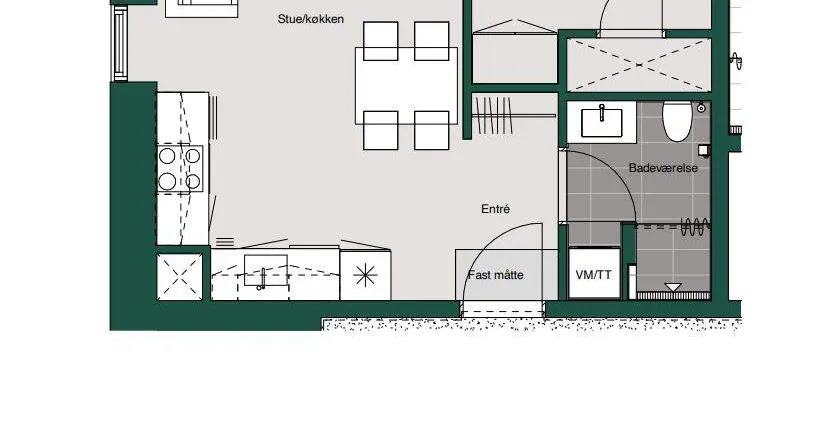 2 værelses lejlighed på 53 m2
