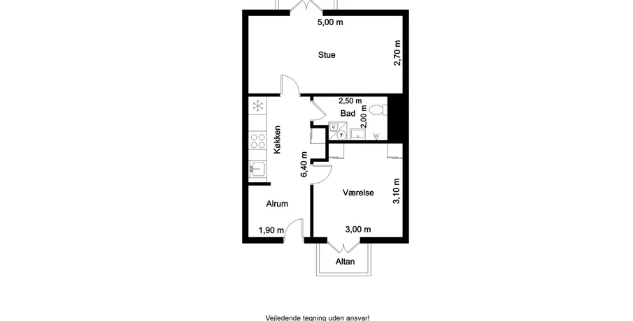 2 værelses lejlighed på 48 m2